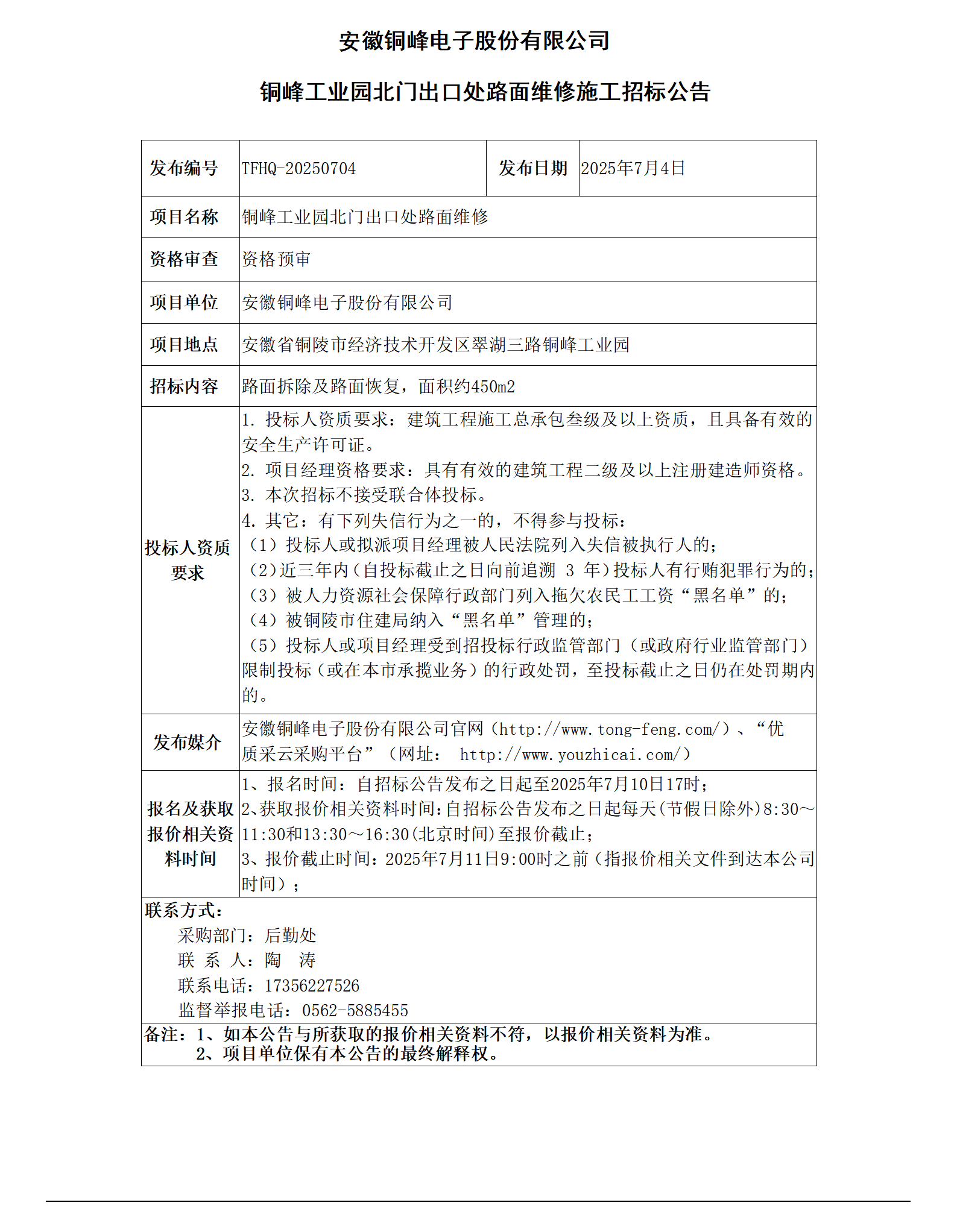 365上市公司官网 (铜峰工业园北门出口处路面维修招标公告)_01