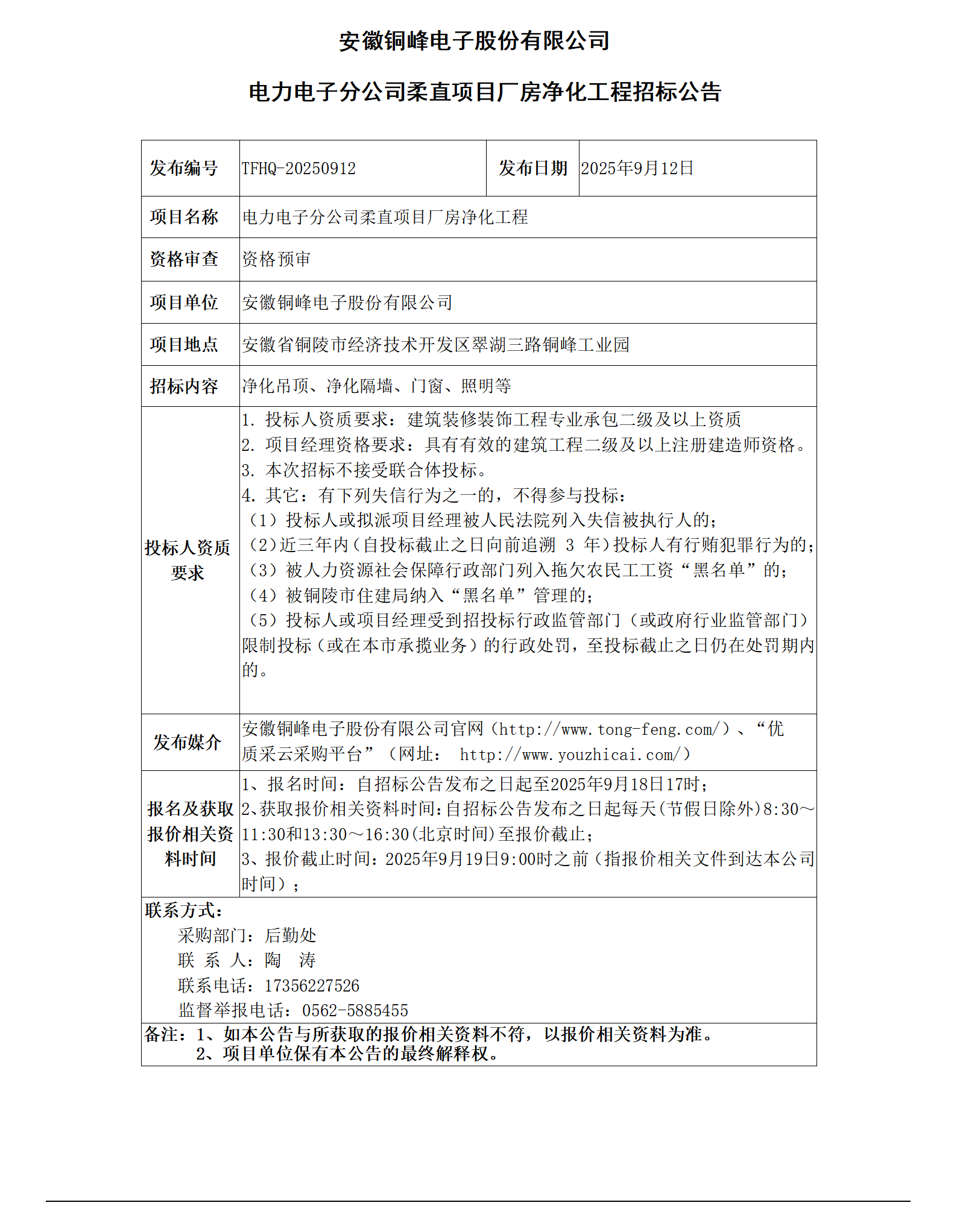 01365上市公司官网 (电力电子分公司柔直项目厂房净化工程 招标公告)_01