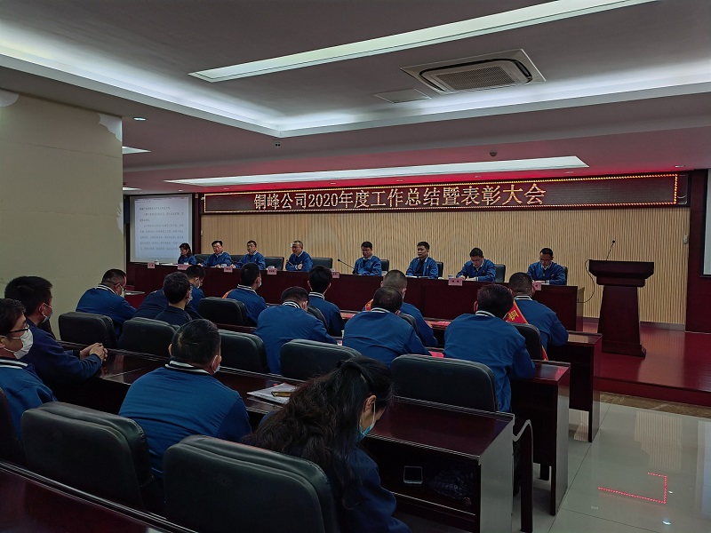 公司党委书记、董事长黄明强在会上作了题为《全面融入铜陵经开区“十四五”发展规划,以实干践初心、用奋斗追梦想,奋力开启铜峰高质量发展新征程》的重要讲话。讲话充分肯定了公司过去一年取得的成绩。一年来,面对错综复杂的国际贸易形势和突如其来的新冠肺炎疫情冲击,公司广大干部职工努力拼搏、真抓实干,较好地完成年度各项目标任务,使经营形势趋稳向好。讲话深入分析了公司当前面临的形势、机遇和挑战,确定了2021年公司工作的总体思路:全面融入铜陵经开区“十四五”发展规划,大力推进市场开拓与优化、推动产品开发与创新,积极推进项目建设,加强管理,苦练内功,强化制度建设与执行,狠抓降本增效措施落实,不断推动企业高质量发展。讲话着重提出2021年八项重点工作要求:一是要强化目标管理,严格考核机制,确保全年目标任务顺利完成;二是要树牢安全发展理念,加强安全生产监管,预防为主、防控结合,切实守住安全生产底线;三是要积极推进技术创新和新产品研发,为公司发展注入新动能;四是要增强成本意识、强化成本控制、实现降本增效;五是要全面加强内部管理,完善制度建设,强化制度执行;六是要努力做好重点项目建设,统筹兼顾,确保按期建成投产;七是要科学制定人力资源发展规划,加强团队建设,激发企业内部活力;八是要全面加强党的组织建设和党风廉政建设,推动精神文明和企业文化建设,让党建工作与公司经营融合共进,为公司发展保驾护航。