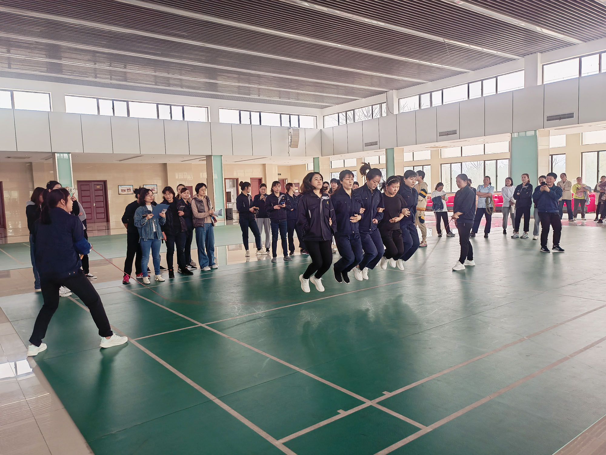 本次“三八”节系列文体活动设有“单人跳绳”“踢毽子”“7人集体跳绳”三个项目,共有119名女职工积极响应,踊跃参加。各项目比赛过程紧张有序、趣味横生。参赛队员们个个精神饱满,积极拼搏、奋力争先。特别是体现团队力量的集体跳绳项目,通过队友间的有效配合,使大家增强了团结协作精神和集体荣誉感。