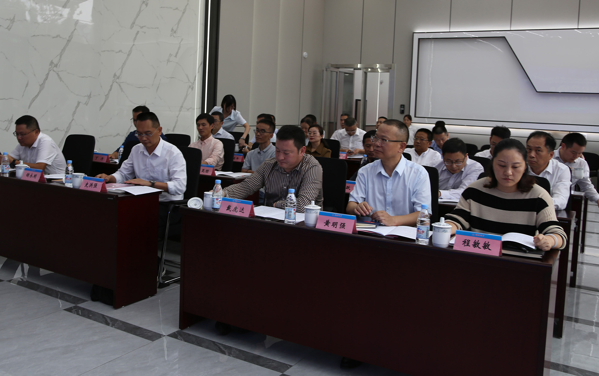 9月26日下午,安徽省重点研发计划高新领域产业链协同创新专项“新能源用电容器及其组件与复合介质材料关键技术研发和产业化”项目启动会在薄膜分公司新产线一楼大厅成功举行。安徽省科技厅高新处副处长史洪强,铜陵市政府副秘书长戴庞达,市科技局局长谢永明,市科技局、铜陵经开区有关领导,公司党委书记、董事长黄明强、常务副总经理、总工程师储松潮,项目咨询论证专家和项目合作单位及相关子课题负责人等参加。启动会第一阶段和第二阶段分别由谢永明和专家组组长、铜陵学院党委副书记苏本跃主持。