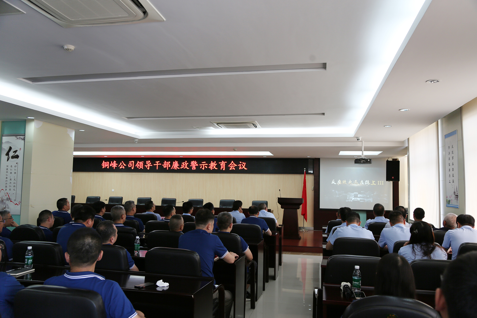 为深入推进“一把手”、年轻干部、新提拔干部、关键岗位干部等四类重点群体的学习教育工作,进一步加强党风廉政建设,7月4日下午,公司在办公大楼二楼职教室召开领导干部廉政警示教育会议。公司党政领导班子全体成员,各党(总)支部书记,各单位、部门负责人,机关职能部门主管和分(子)公司部门经理、车间主任及以上人员共计100余人参加会议。